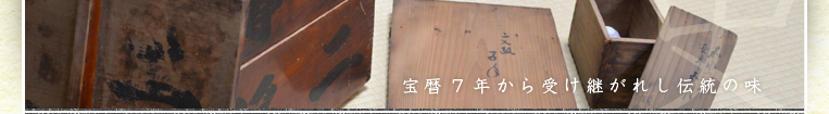いつから始めたか、はっきりとした記録は残っておりませんが、店はやがて時代の移り変わりと共に、商いの手を原料の魚から、それを調理してお宅まで届ける“仕出し”へと広げ、やがてはそれを専業とするようになっていきます。(現在も店に残る、鉢箱の裏書きに「文政 子年」(1828年)とありますので、その頃にはすでに仕出しを商っておりました。)